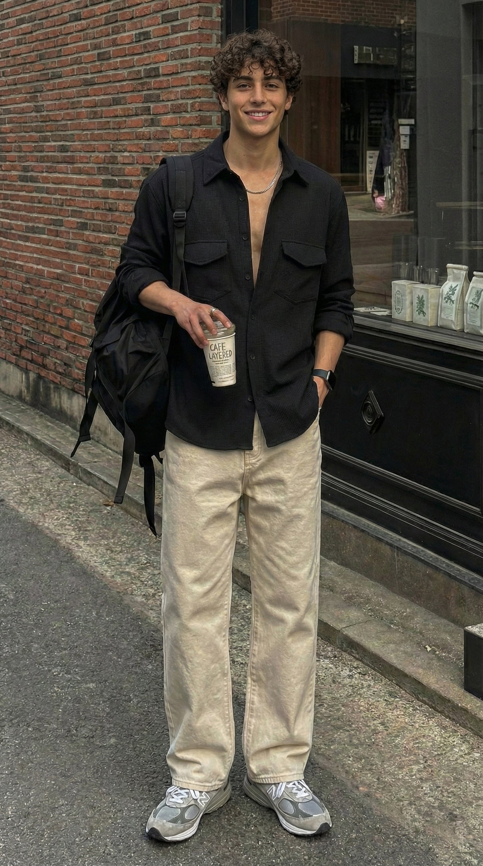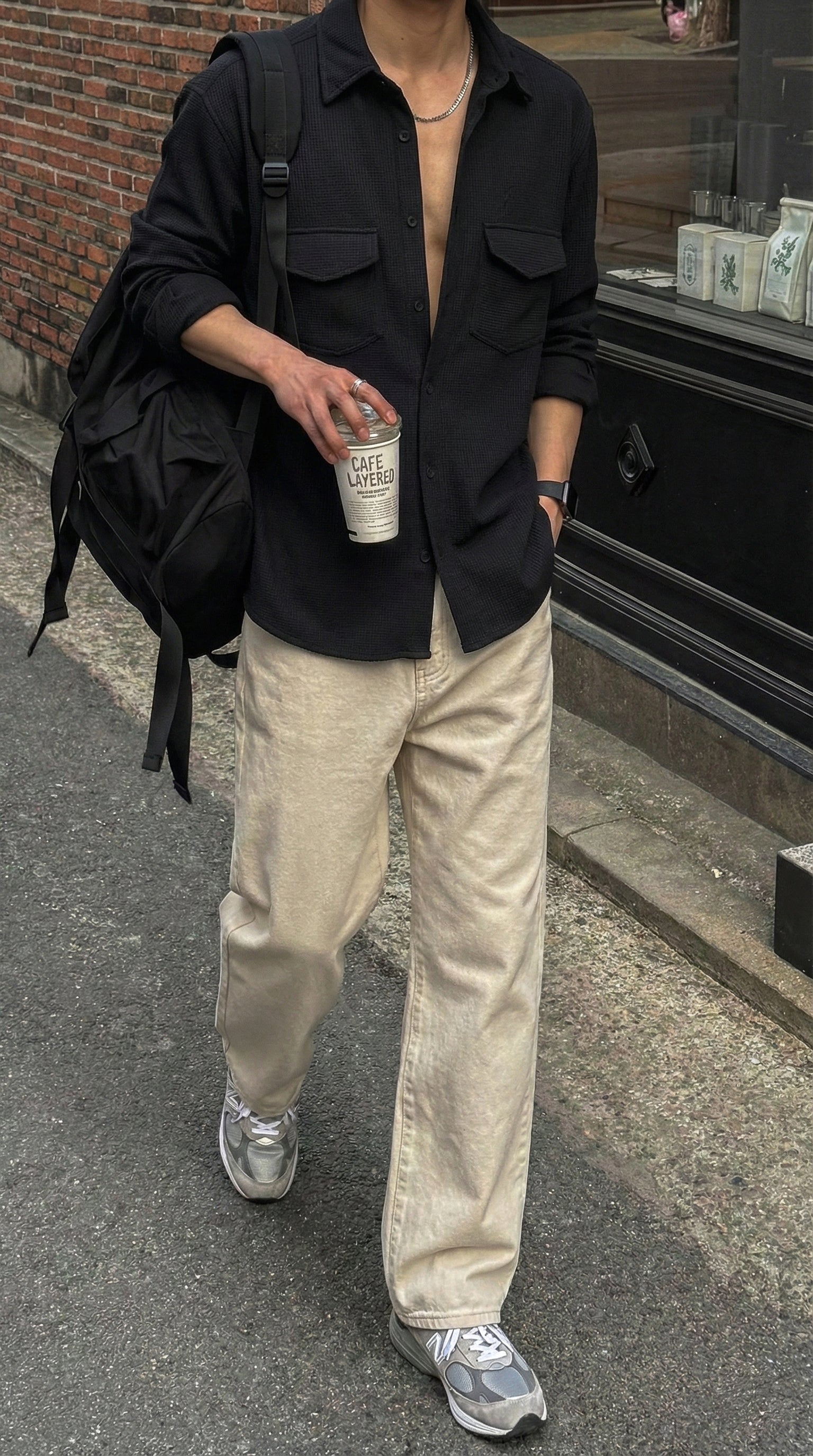 Black Color Double Side Patch Pocket Knitted Fabric Shirt