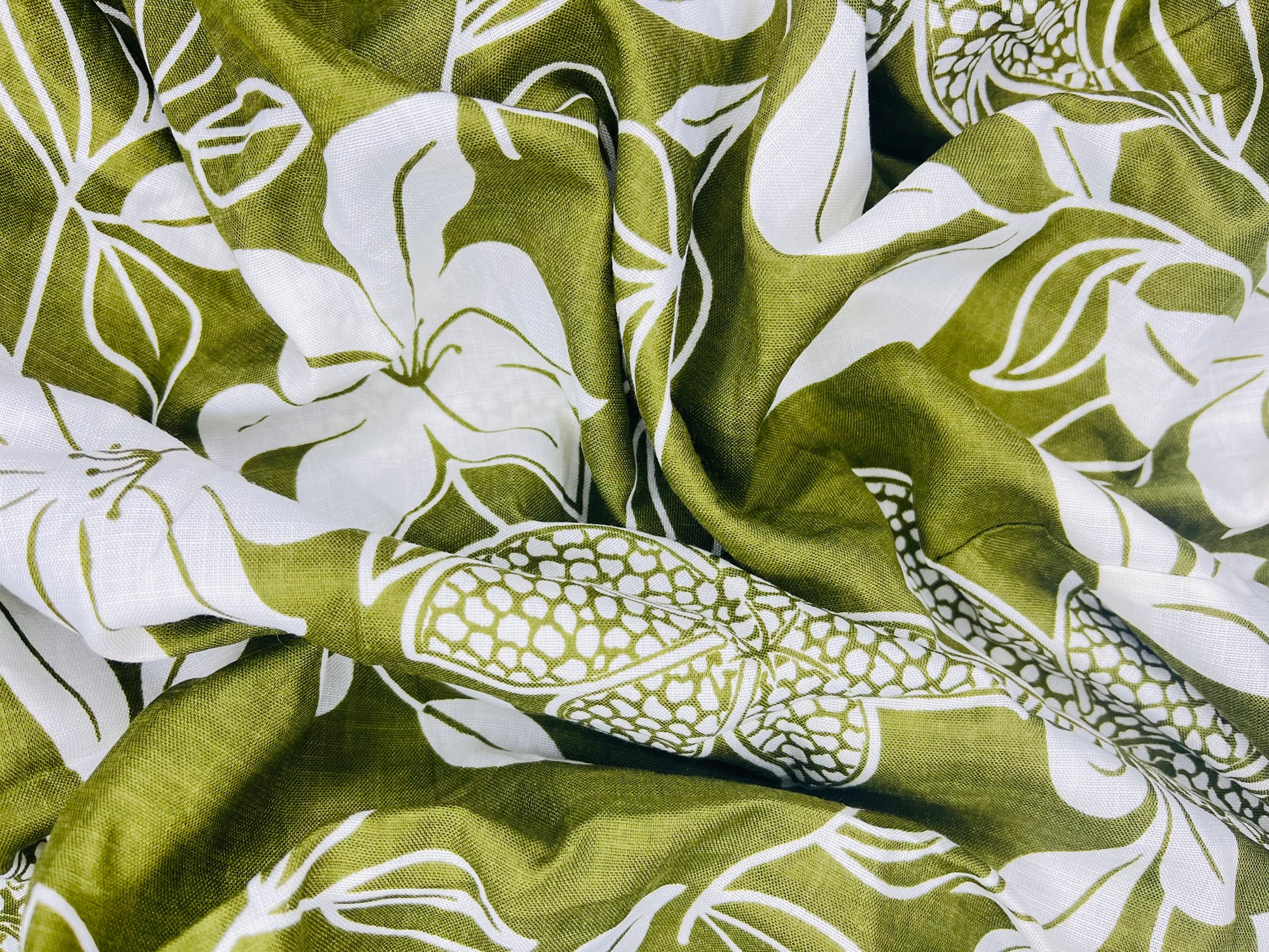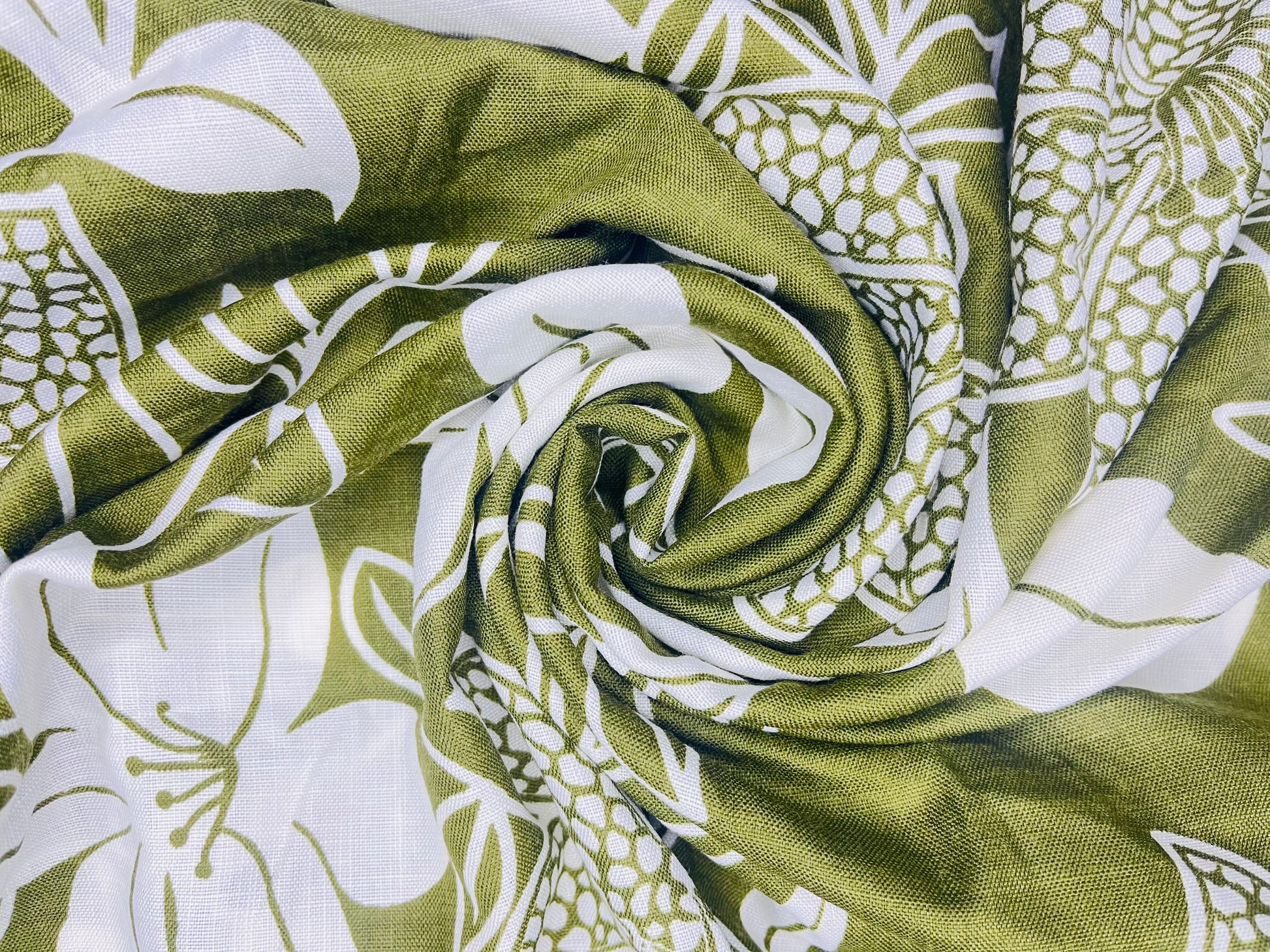 Floral Print Olive Color Cotton Hand Loom Fabric (Width 58 Inches)