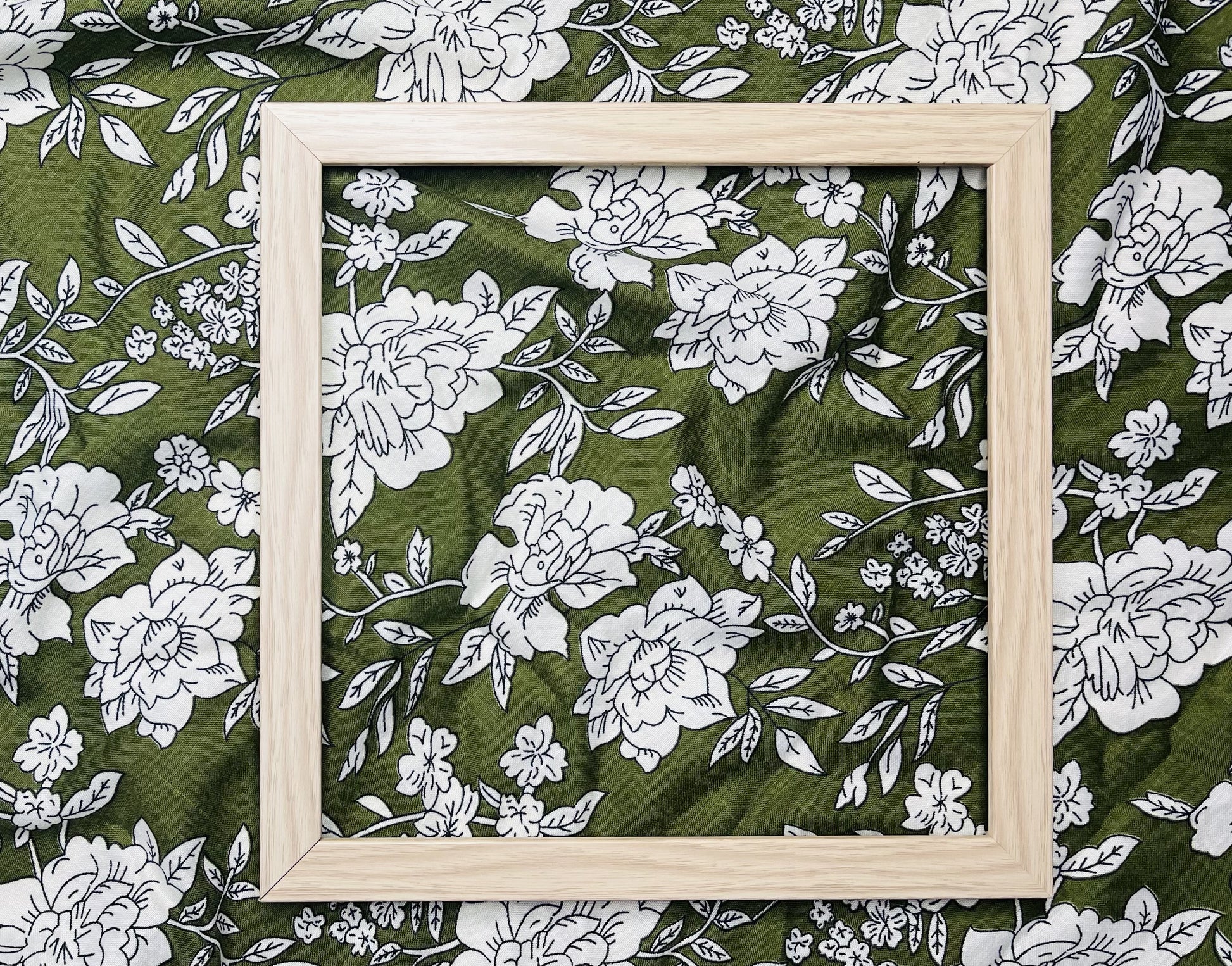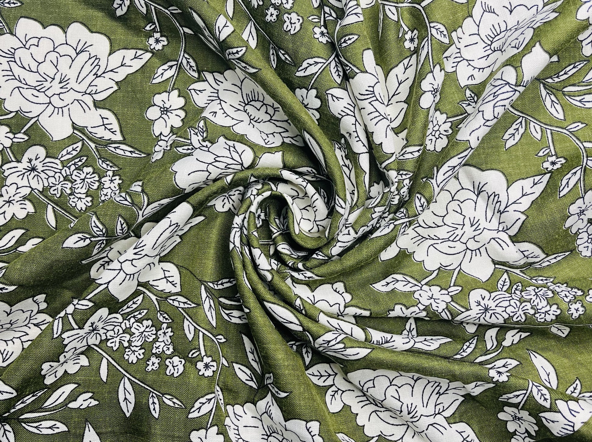 Floral Print Olive Color Pure Cotton Fabric (Width 58 Inches)