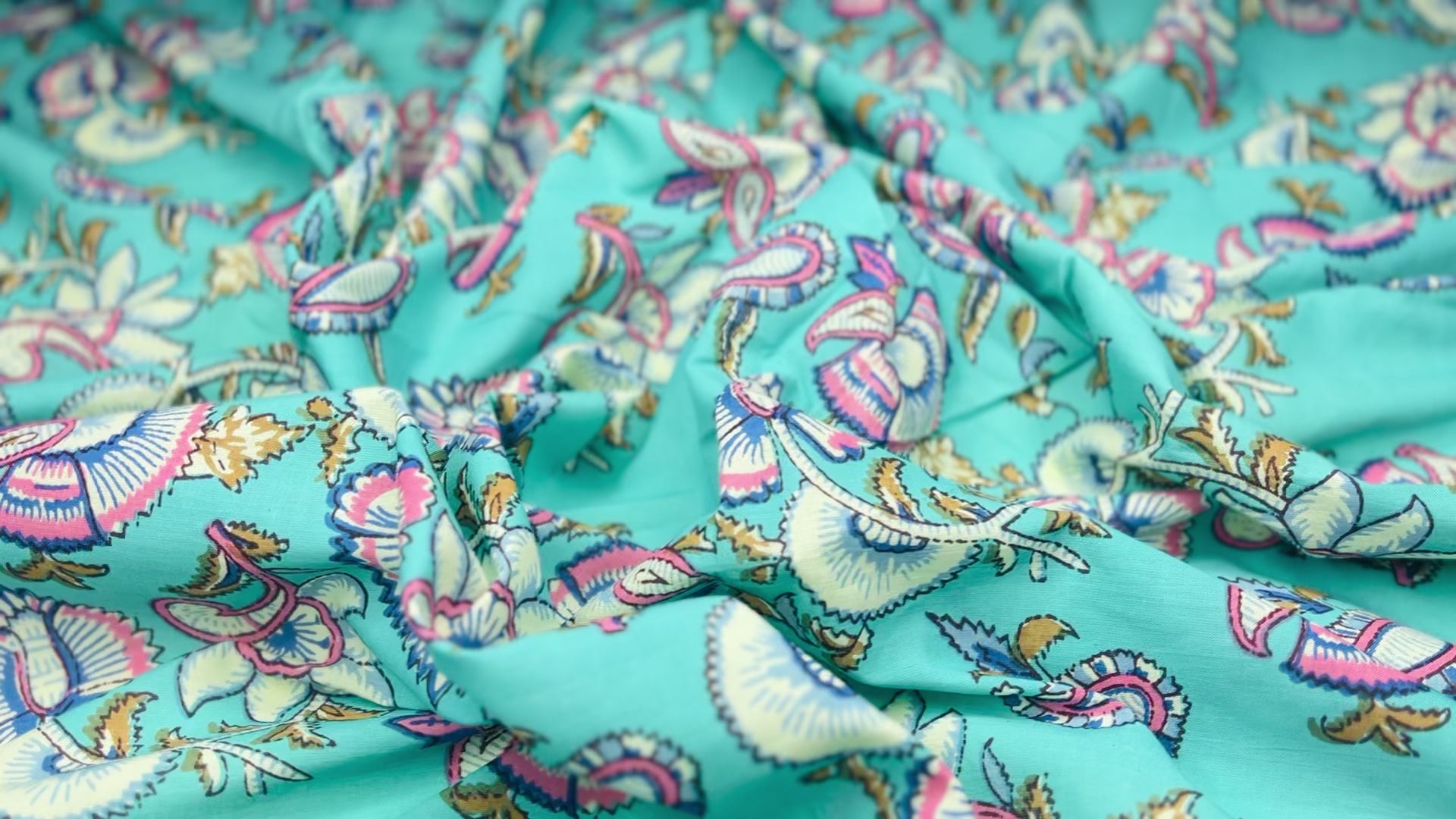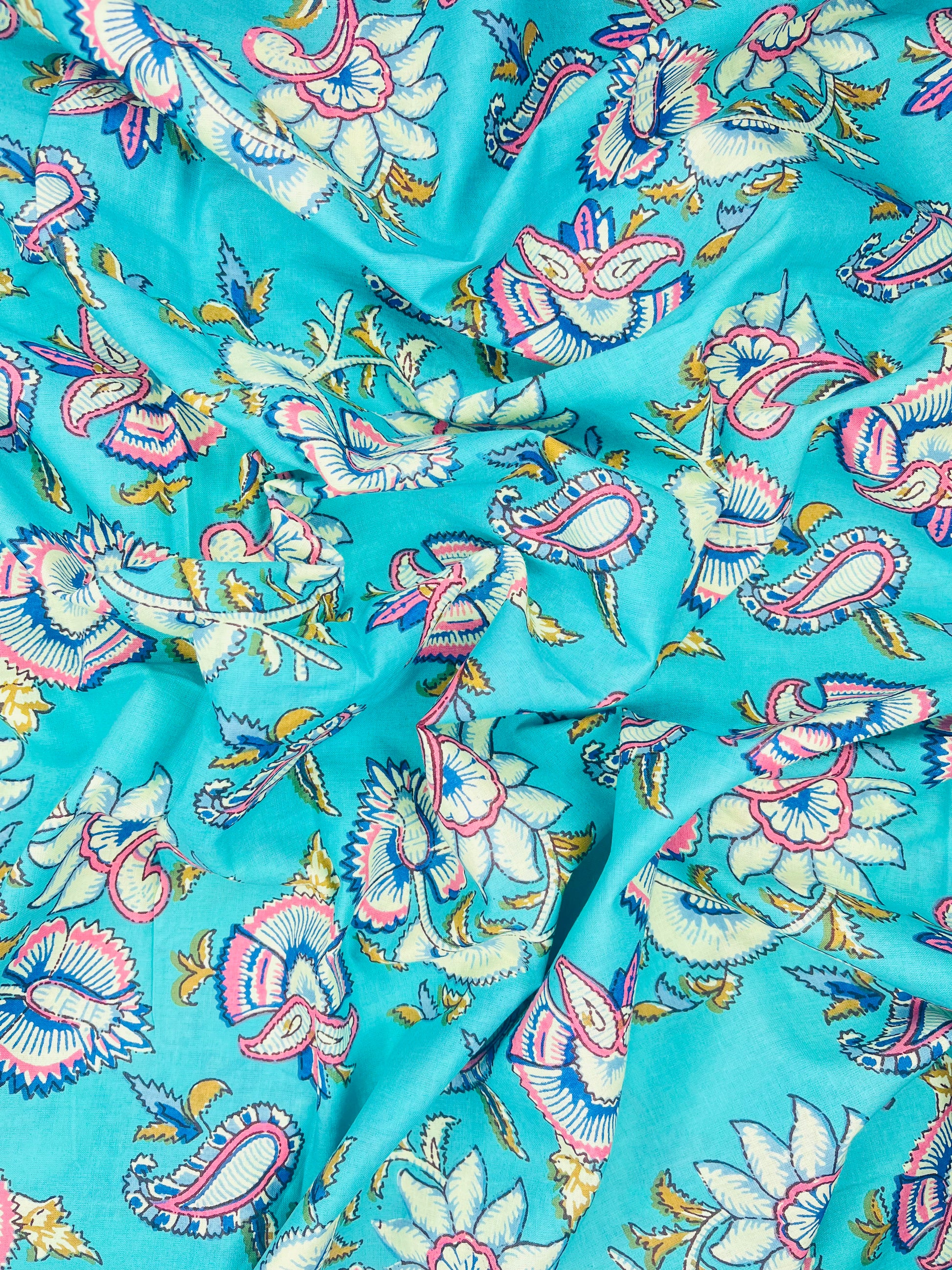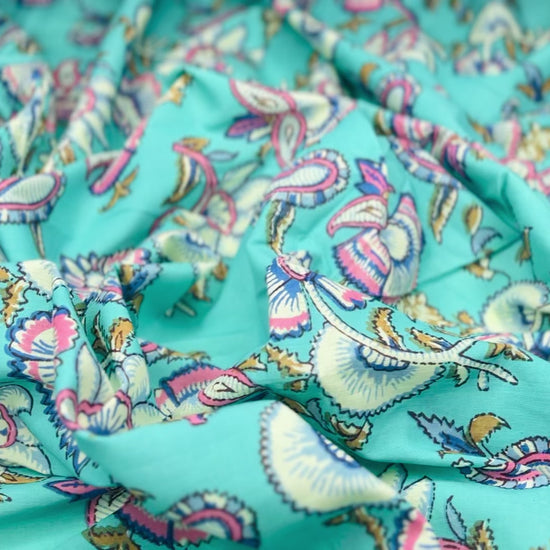 Multi Color Leave Print Pure Jaipuri Cotton Fabric (Width 42 Inches)
