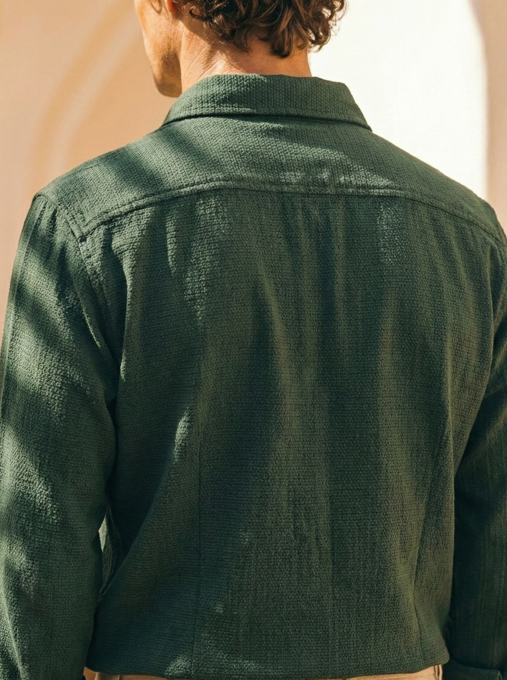 Royal Green Color Textured Design Jacquard Fabric Shirt