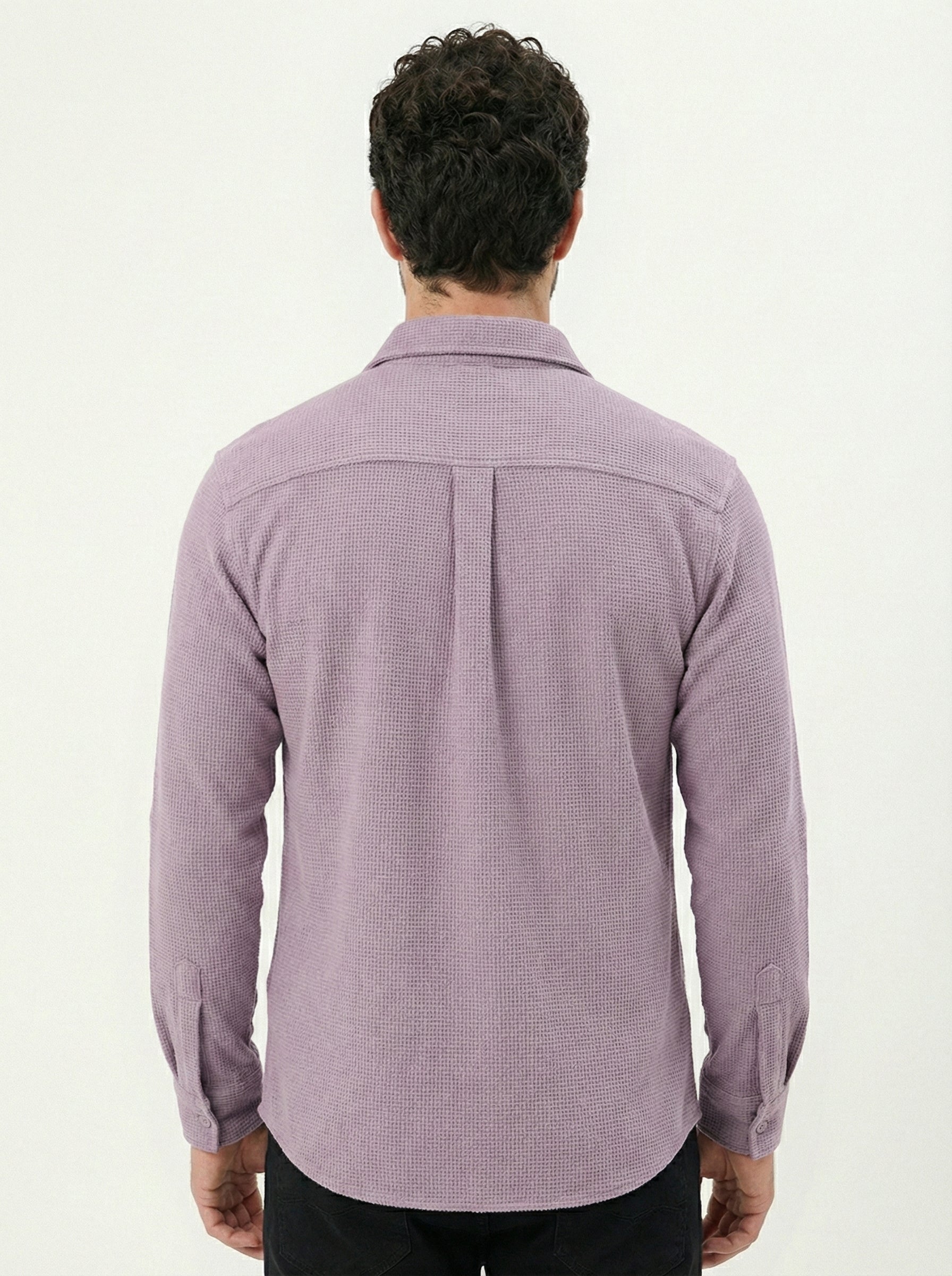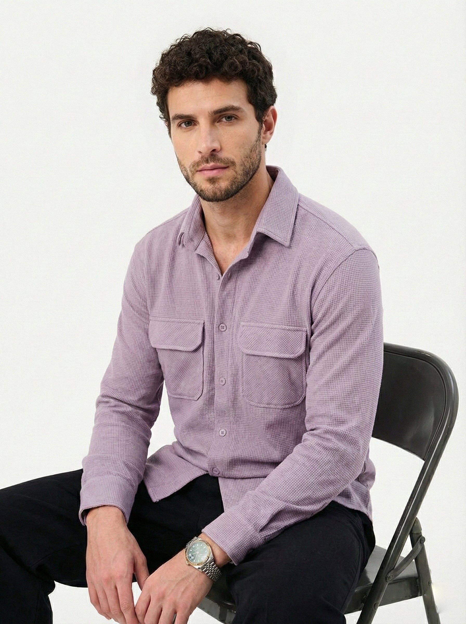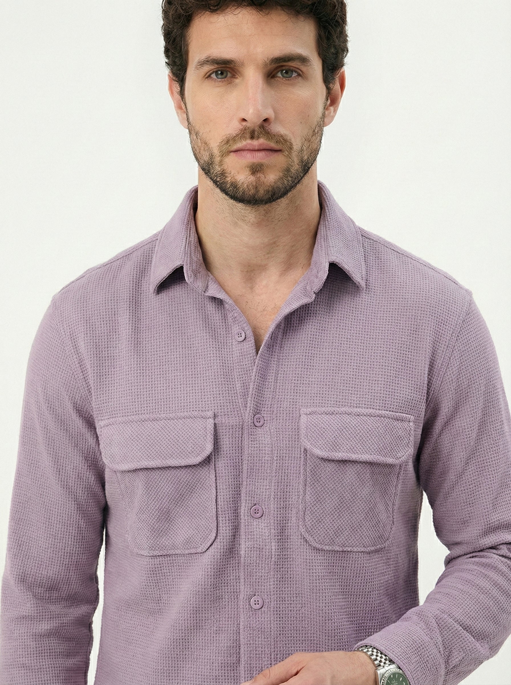Purple Color Double Side Patch Pocket Knitted Shirt