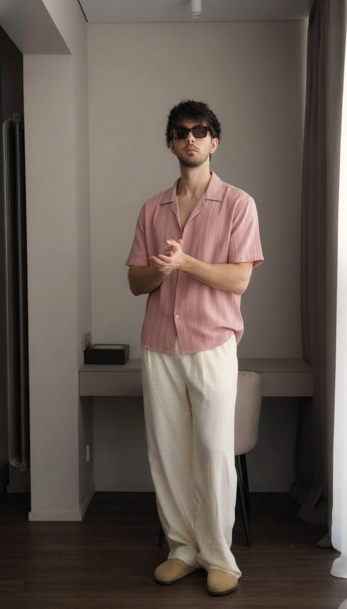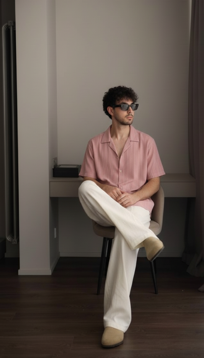Half Sleeves Mauve Color Striped Self Design Knitted Shirt