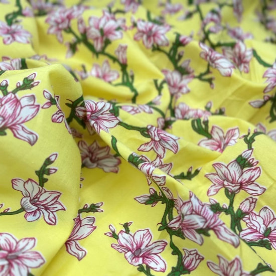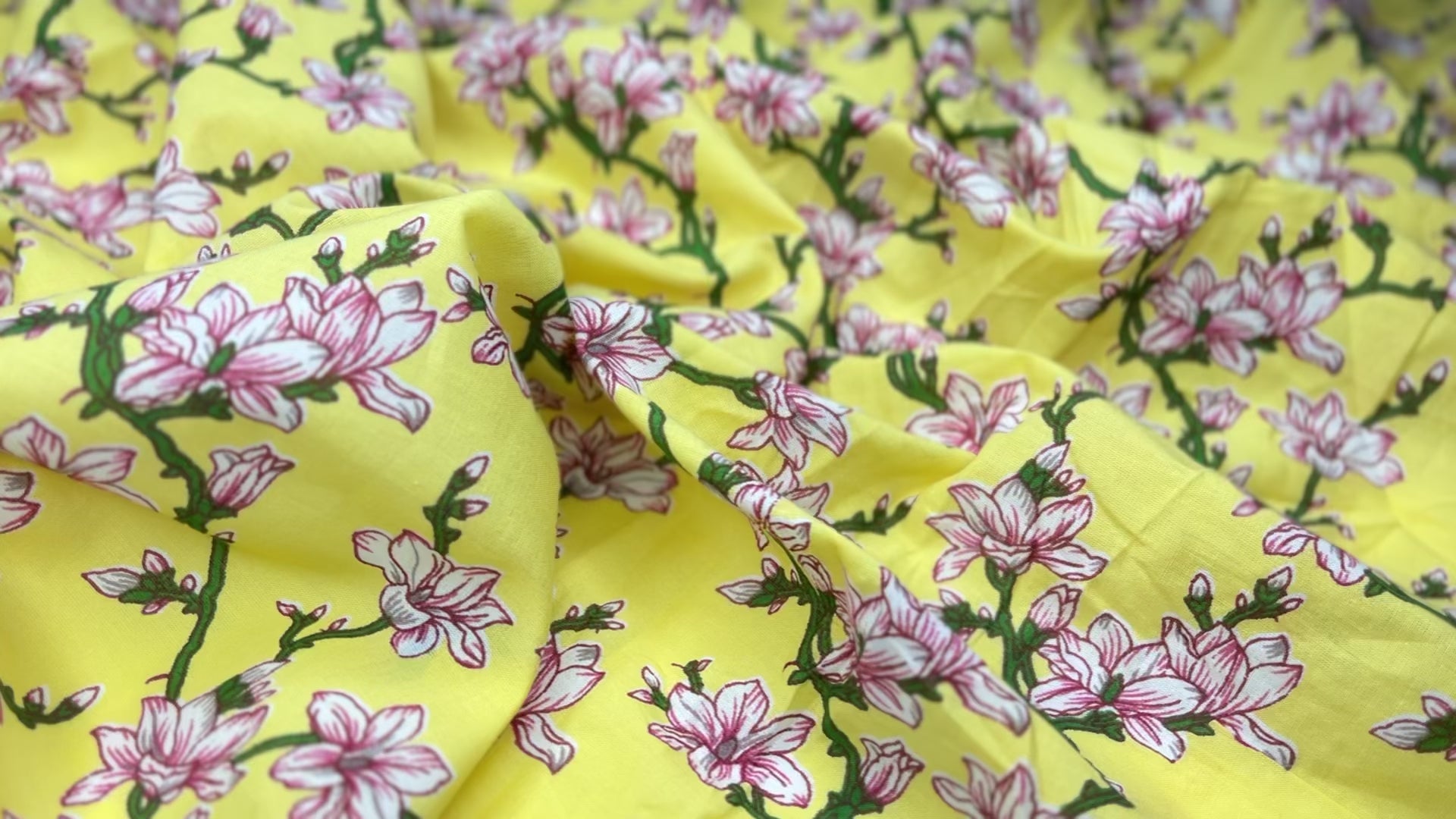 Yellow Color Printed Pure Jaipuri Cotton Fabric (Width 42 Inches)